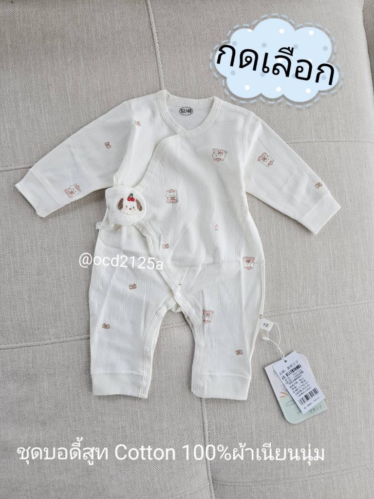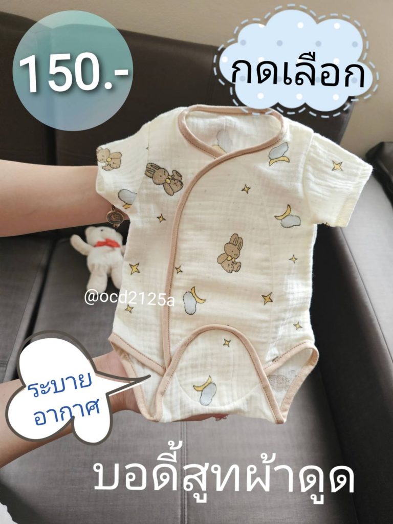ชุดบอดี้สูทผ้าดูด ผ้าสาลูญี่ปุ่นปุ่นทอ 2 ชั้น นุ่มย่น สำหรับ 0-3 เดือน